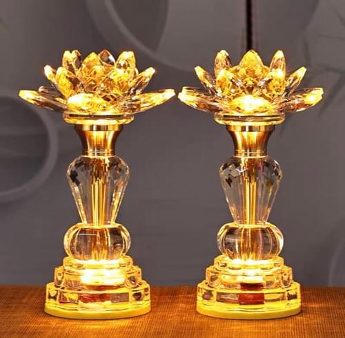 莲花灯插电LED七彩水晶荷花灯佛前供灯插电式财神灯黄光